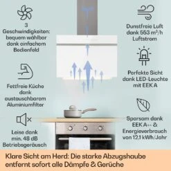 Antonia Dunstabzugshaube Kopffrei 60cm 350m³/h Touch-Bedienfeld Glas