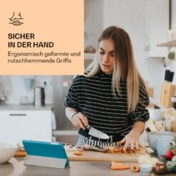 Exklusive Präzisionsmesser nach japanischem Vorbild: Die handgeschliffene Zelite Infinity by Klarstein Alpha-Royal Japanese Messerserie erfüllt hohe Ansprüche bei jeder Kochkunst. Insgesamt 67 Schichten bilden als hochwertiger, japanischer Damaszener-Stahl übereinanderliegend die changierende Klinge. Durch eine perfekt ausbalancierte und ergonomische Formgebung und einen nahtlosen, dreifach vernieteten Griff aus G10-Glasfaser liegen die eleganten Küchenwerkzeuge wunderbar in der Hand. Hier verbinden sich Schärfe, Haltbarkeit, Gewicht, Kontrolle und Handhabung mit außergewöhnlichem Design, perfektioniert durch eine kunstvolle 3-Metall-Mosaikniete im Griff.