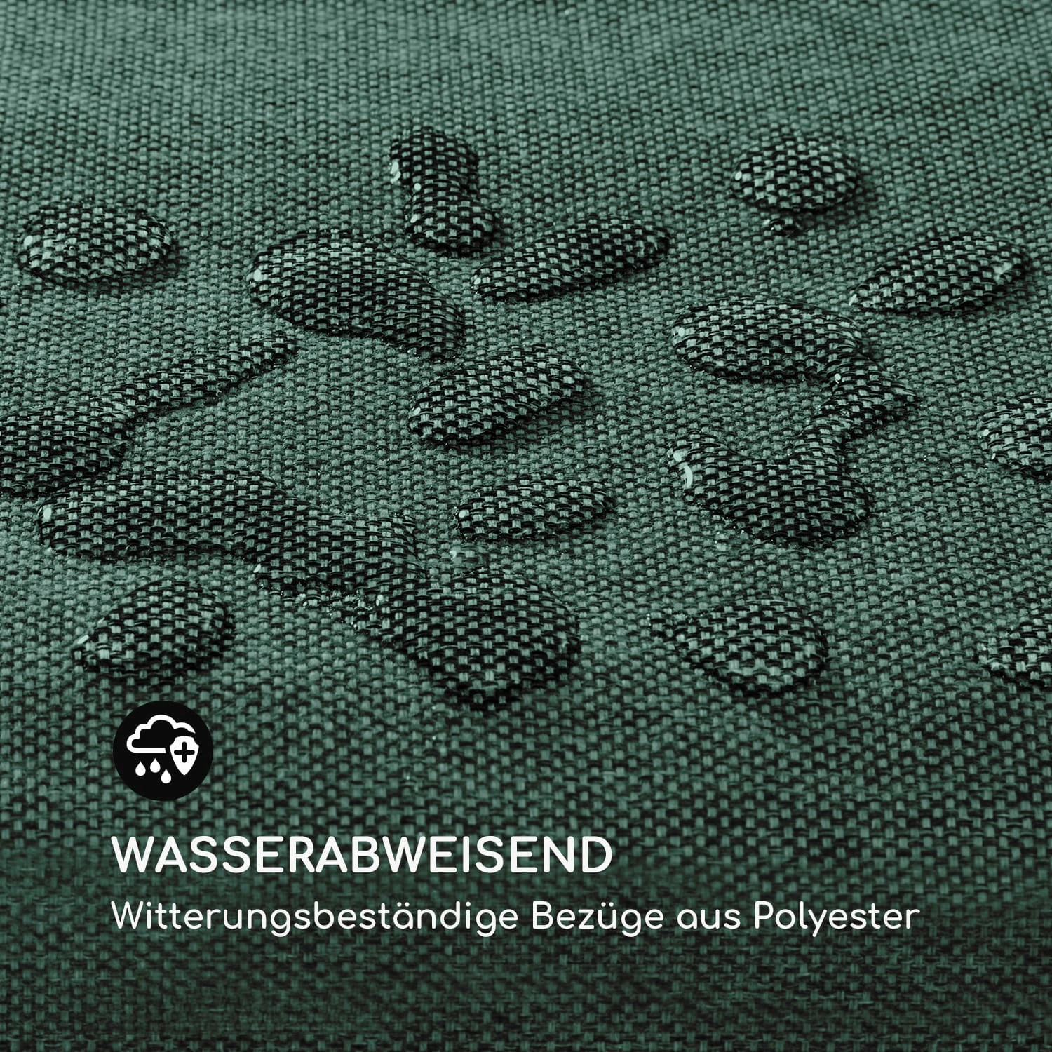 Die Blumfeldt Aruba Hollywoodschaukel macht es ganz leicht, den Alltag zu vergessen. Auf ihrer 130 cm breiten, sanft geschwungenen Sitz- und Liegefläche mit 4 cm dicker Polsterung schaukelt es sich allein oder zu zweit komfortabel wie in einem Liegestuhl. Das mitschwingende, übergewölbte Sonnensegel bringt zusätzliche Geborgenheit und schützt obendrein vor kecken Sonnenstrahlen – egal wo die Schaukel ihren Platz findet. Auch in puncto Standsicherheit bleiben keine Wünsche offen. Massive Holzbalken, vollverzinkte Stahlketten und Schrauben sorgen für eine hochstabile Konstruktion die mit bis zu 250 kg belastbar ist. Das dunkelgrüne Sonnendach und das witterungsfest lasierte Lärchenholz zaubern Sommerstimmung in jede Sitzecke.