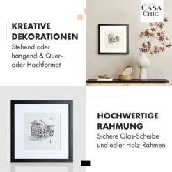 Setze Fotos und Bilder gekonnt in Szene: Die exklusive Cannon Bildeinfassung von Casa Chic by blumfeldt schenkt jedem Foto den perfekten Rahmen – mit oder ohne Passepartout. Hier vereinen sich hochwertige Handarbeit und ein stilvoller Look zu einem ganz besonderen Design. Das bruchfeste Sicherheitsglas schützt deine Kunstobjekte, Drucke oder Fotografien optimal vor Schmutz und Staub. Dank seines 2 x 2 cm starken Rahmenprofils hängt der Cannon bündig an der Wand. Natürlich macht der Fotorahmen auch als Aufsteller auf deinem Sideboard eine klasse Figur.