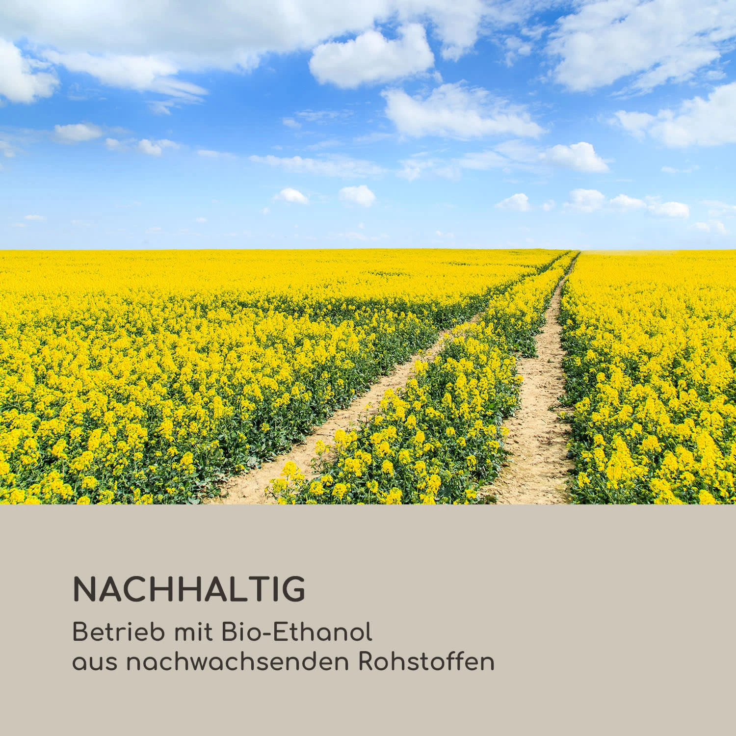 Mit dem blumfeldt Fiamme Pila Ethanol-Kamin zieht eine wunderschöne Feuerstelle in dein zu Hause ein. Der Fiamme Pila wird komplett mit Bio-Ethanol aus nachwachsenden Rohstoffen betrieben und hinterlässt beim Verbrennen weder Ruß noch unangenehme Gerüche. Der aus Edelstahl gefertigter Brenner fasst 0,5 Liter und sorgt für ein bis zu 5 Stunden andauerndes Flammenspiel. Sein modernes Turm-Design macht ihn auch ohne Feuer zum Blickfang. Natürlich ist der Fiamme Pila auch im Garten oder auf der Terrasse ein Highlight und verbreitet ein gemütliches Ambiente. Das beiliegende Regencover schützt ihn bei Nichtgebrauch vor Wind und Wetter. Zum sicheren Löschen der Flamme ist eine praktische Löschplatte im Lieferumfang enthalten.