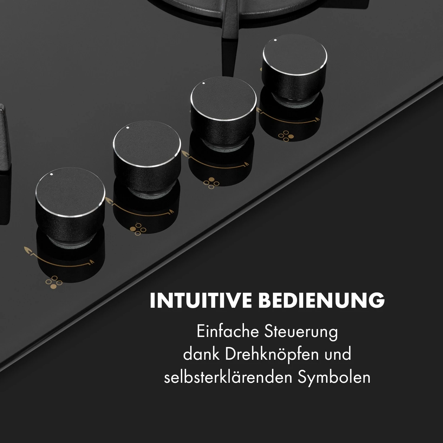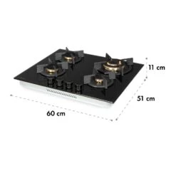Goldflame 4 Gaskochfeld 4-flammig Messing-Brenner Glaskeramik Schwarz