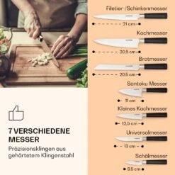 Kitano 8tlg. Messer-Set Mit Block 7 Messer Stahl Edler Holzblock