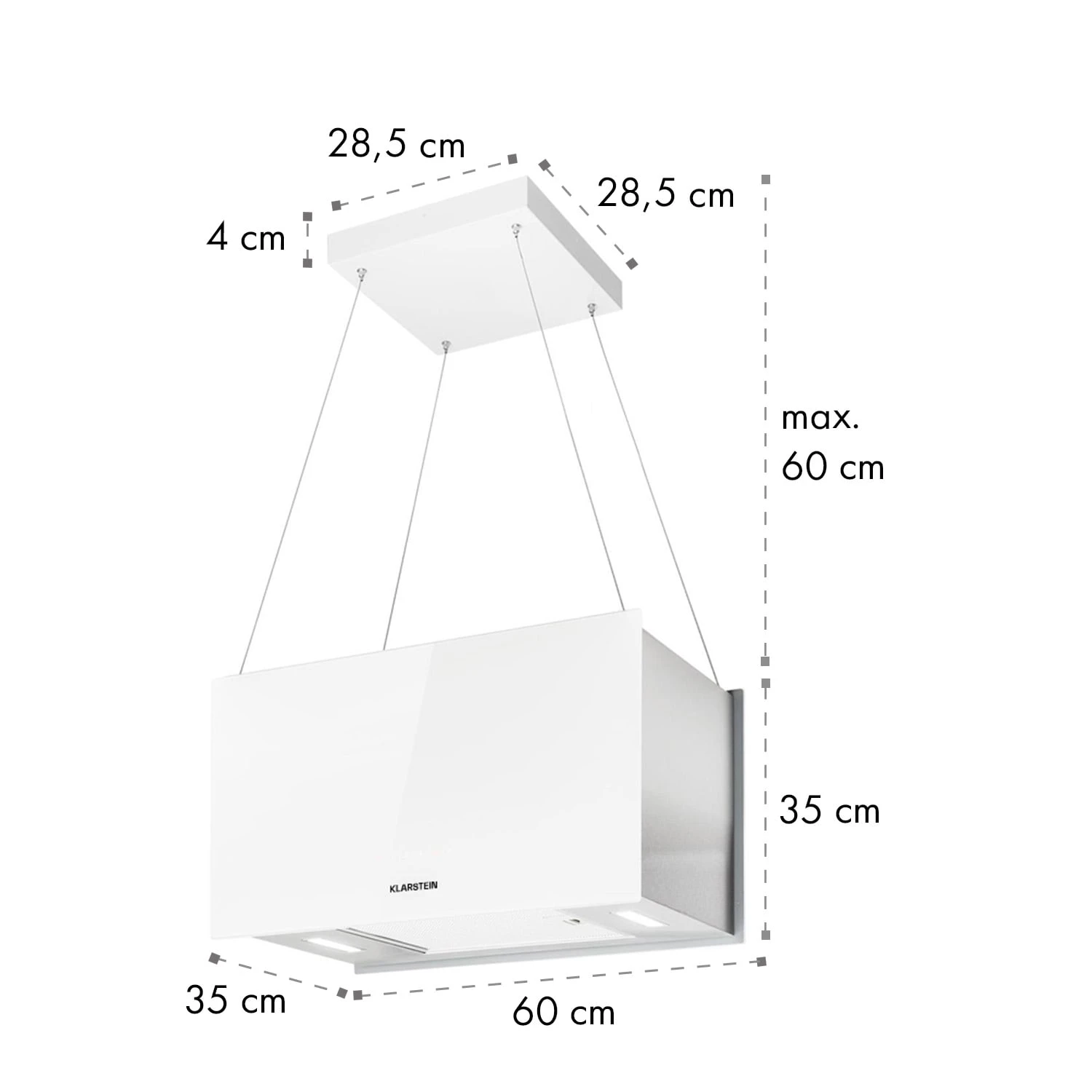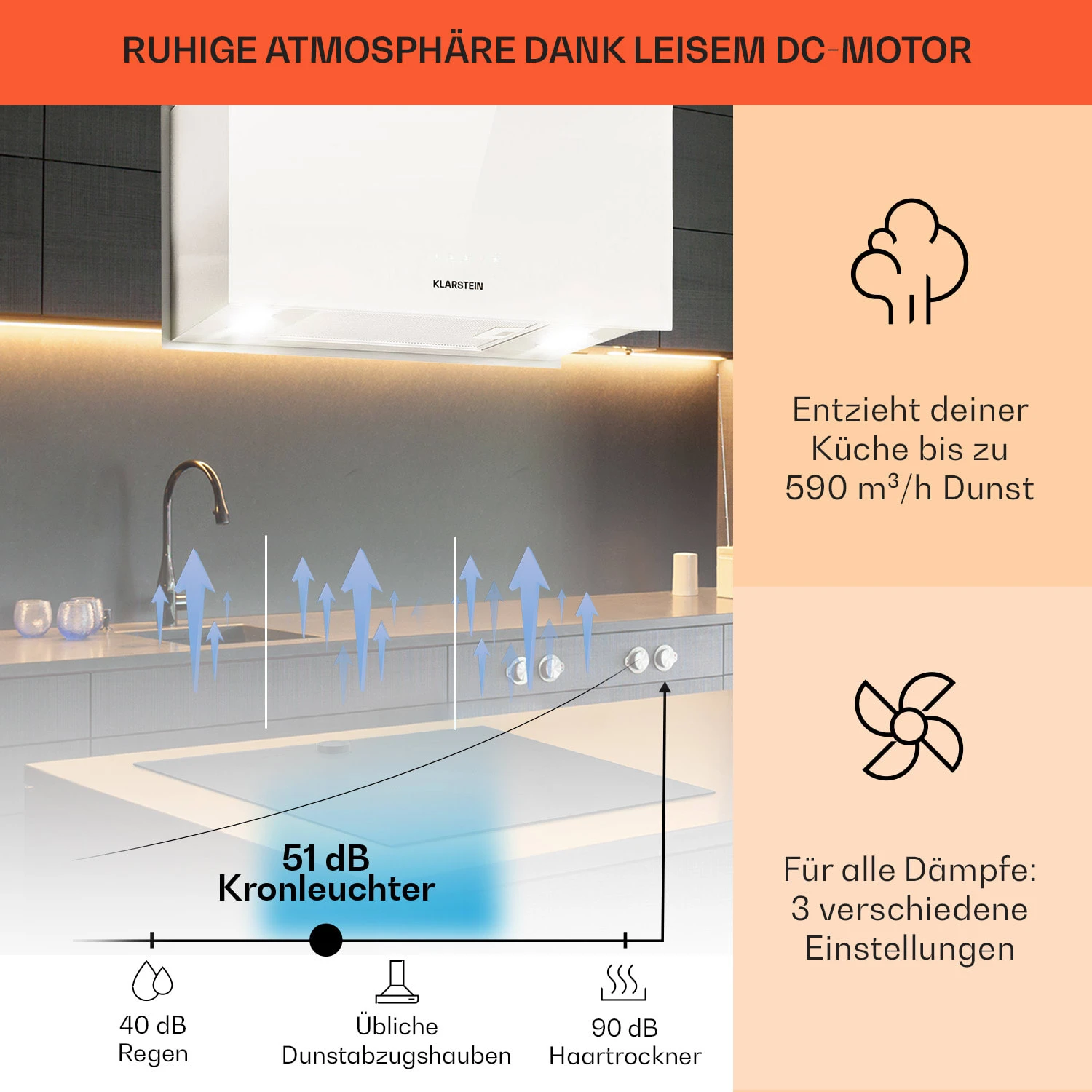 Kronleuchter L Inselabzugshaube 60cm Abluft: 590m³/h LED Touch Glas Weiß
