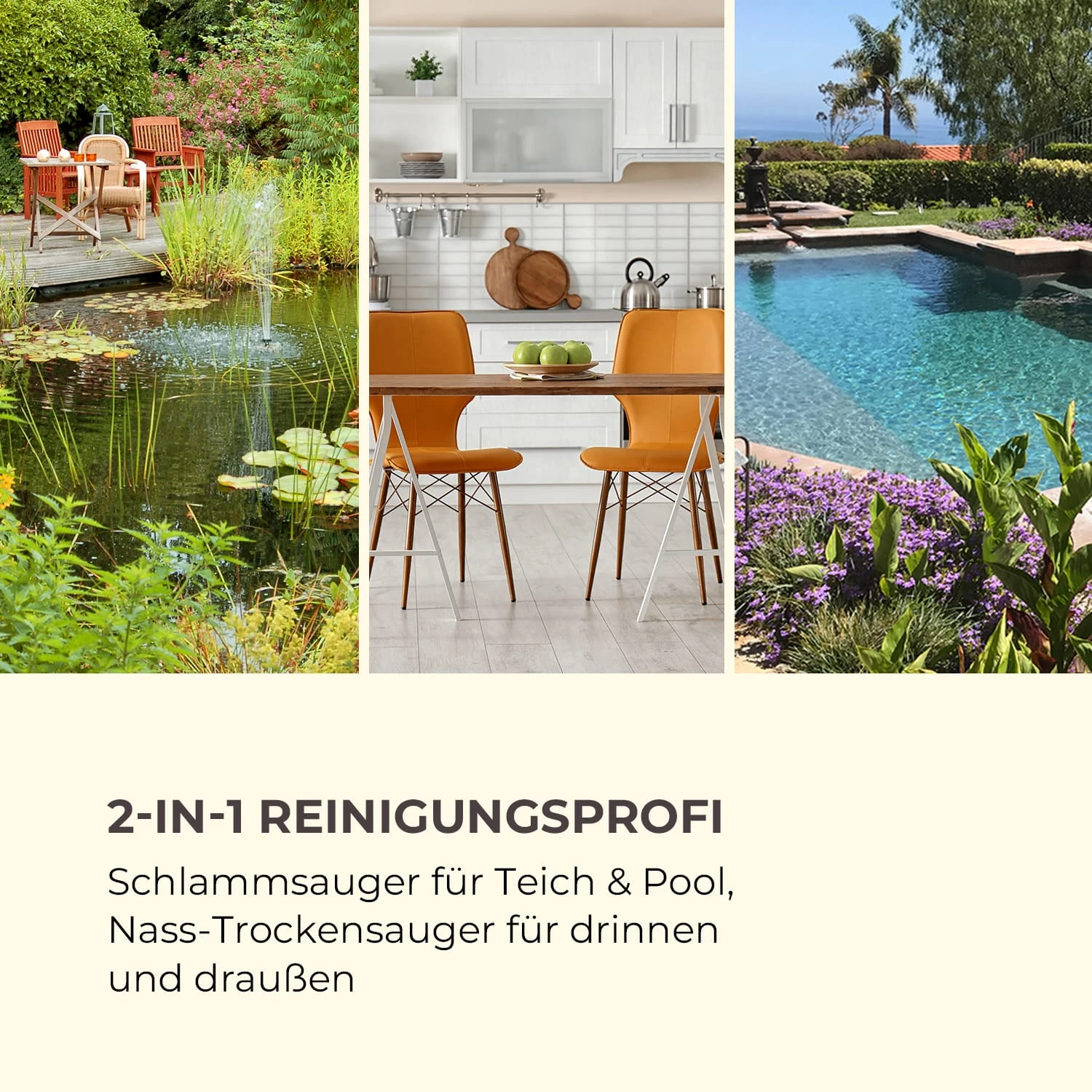 Sauberkeit drinnen und drauĂźen, im Nassen wie im Trockenen: Der Waldbeck Lakeside Power Poolsauger ist Ihr neuer 2-in-1-Reinigungsexperte.