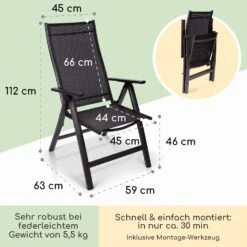 - Sitz- und Rückenfläche aus wetterfestem, strapazierfähigem Textilene