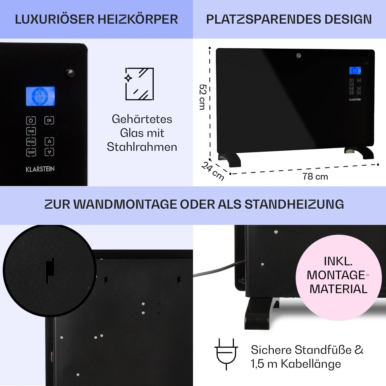 Norderney Konvektions-Heizgerät Thermostat Timer 2000W 30m² Schwarz