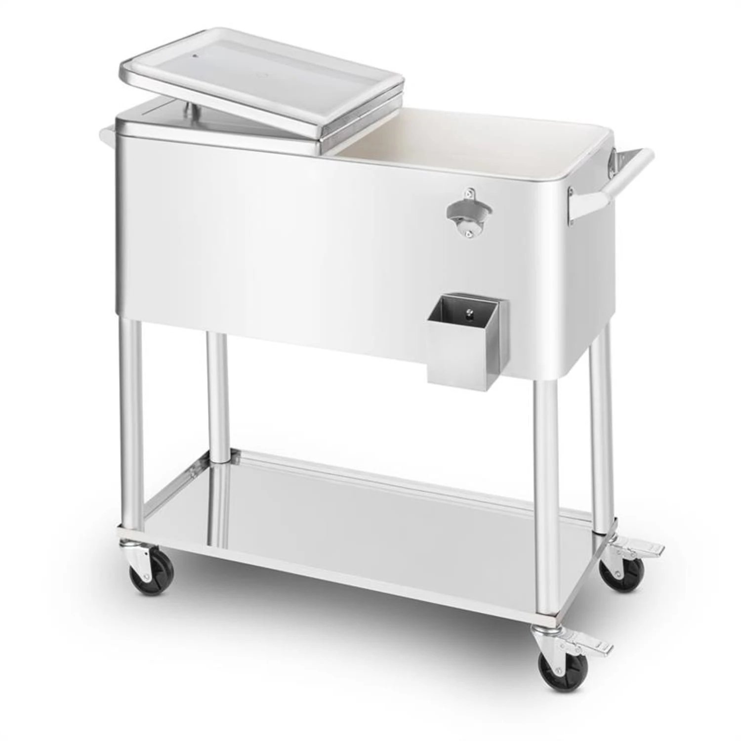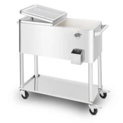 Der riesige, 80 Liter große Innenraum des Blumfeldt Springbreak Terrassenkühlwagens bietet mehr als genug Kaltgetränken Platz, um nicht nur die erste Halbzeit mit kühlem Kopf zu überstehen. Damit eignet er sich nicht nur zur Versorgung von kleinen Privatfeten, sondern auch zum gewerblichen Einsatz bei Caterings. Einfachen Zugriff in die isolierte Kühlbox ermöglichen zwei Deckelklappen,die Kälte drin und Hitze draußen halten. Mit leichtem Ruck trennt der integrierte Öffner Flaschen von ihren Kronkorken und deponiert die lästigen Metallteile direkt in seiner Auffangbox.