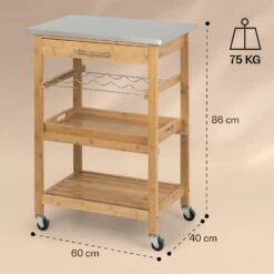 Vermont Servierwagen Küchenwagen 5 Etagen Holz Edelstahl Mobil