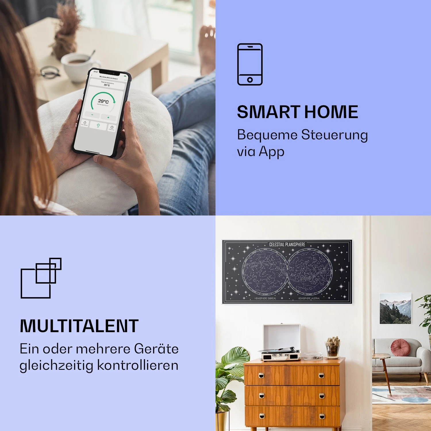 Wonderwall Air Art Smart Infrarotheizung Himmelskarte 120x60cm 700W